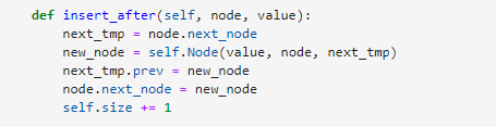 당연히 노드가 하나 추가 되었으니 전체 리스트 길이인 self.size도 +1을 해 줍니다.