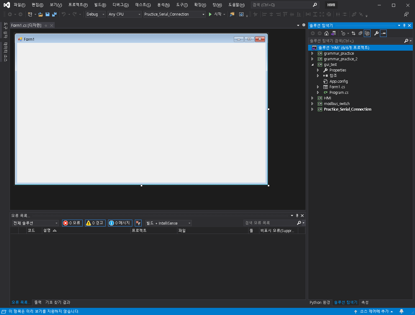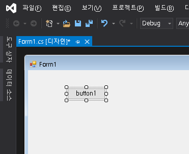 그리고, 우리는 프로젝트를 Windows Form으로 선택했기 때문에, GUI 기본 화면이 앞에 나온 것입니다.