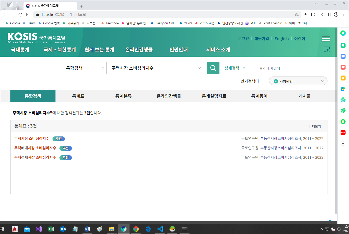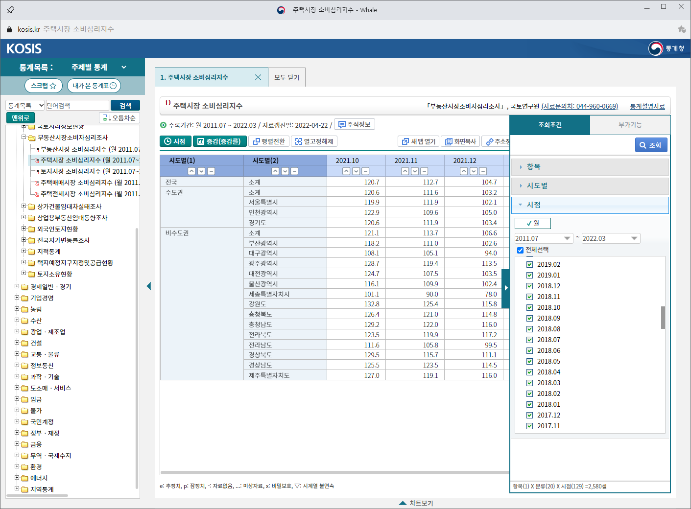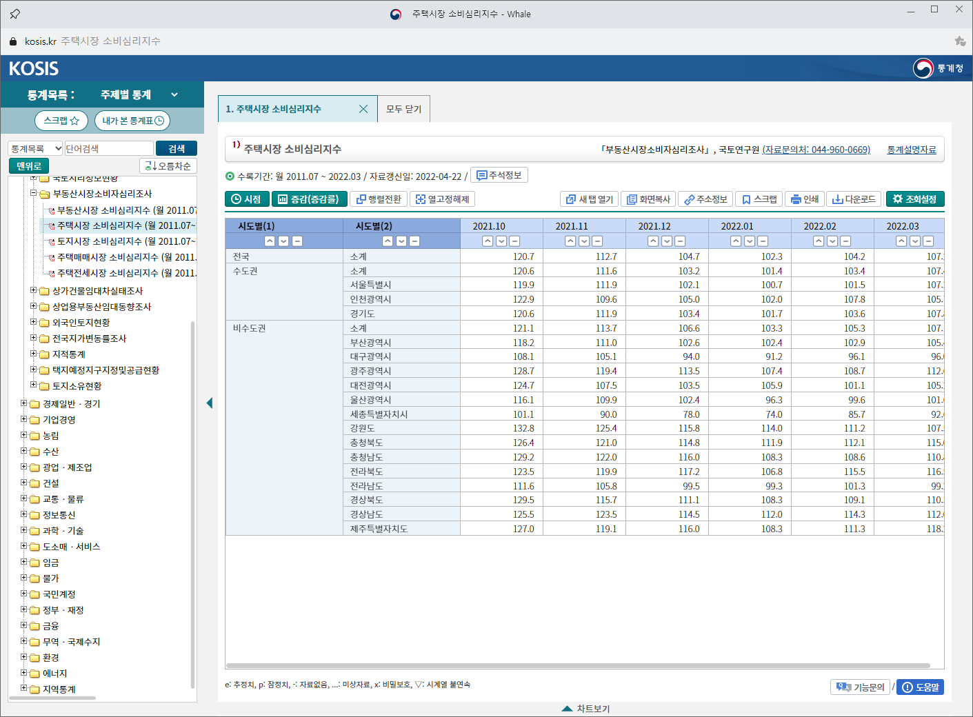 검색창에 '주택시장 소비심리지수'를 입력해봅니다.