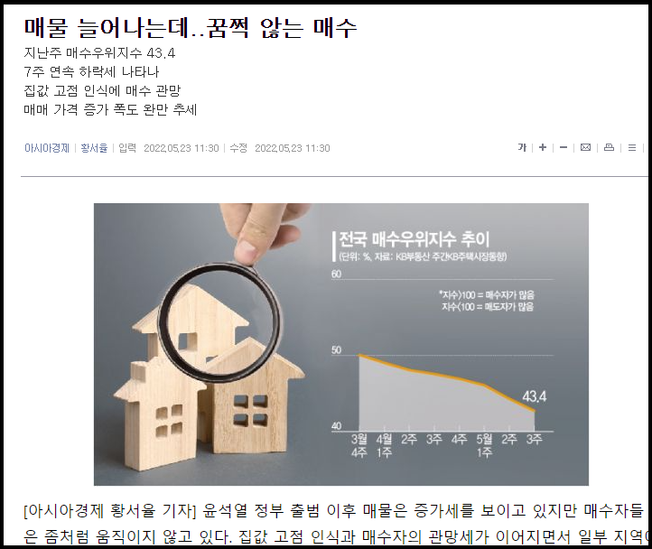 즉, 해당 뉴스에서 말하는 매수 심리는 바로 '작년과 비교하면 굉장히 낮아졌다.' 이렇게 볼 수 있겠네요.