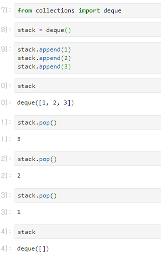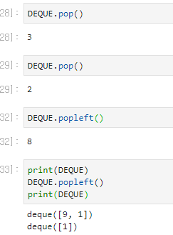 pop을 쓰면 뒤에서부터 꺼내고, popleft를 쓰면 앞에서부터 꺼내는 것을 볼 수 있습니다.