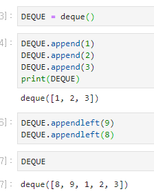 append를 쓰면 뒤에서부터 값이 들어가고, appendleft를 쓰면 앞에서부터 차례대로 값이 넣어진 것을 볼 수 있습니다.