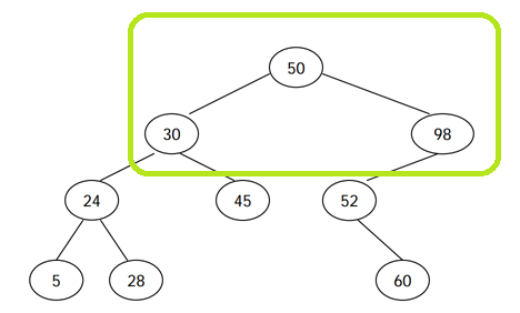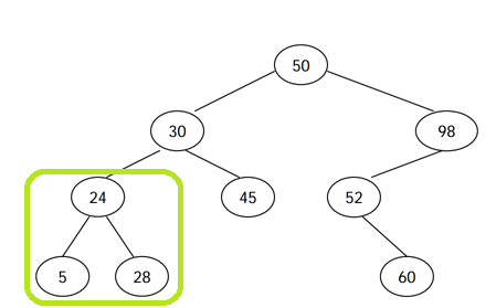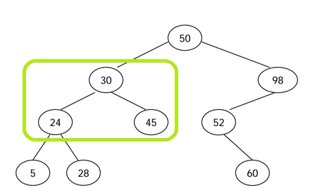 그래서 50의 왼쪽은 30-24-5-28-45를 방문합니다.