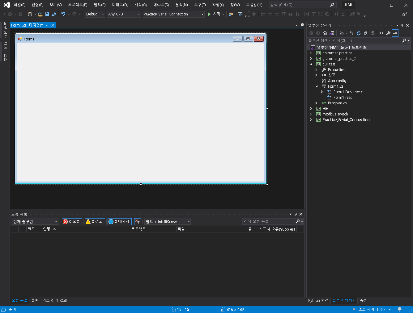 C#을 활용한 Winform GUI 를 사용할 준비가 끝났습니다.