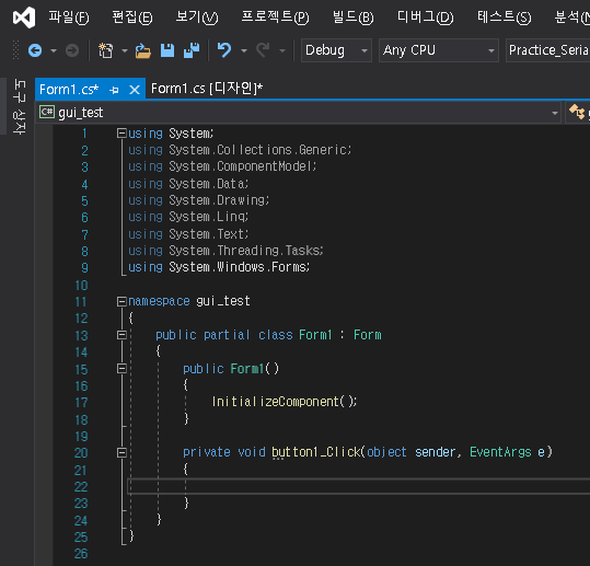 2021.07.26 - [프로그래밍/C#] - C#을 사용한 Winform GUI - 본격적으로 C# 시작하기