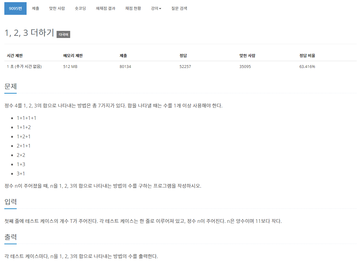 3은 1+1+1, 1+2, 2+1, 3이 가능하므로 4개.