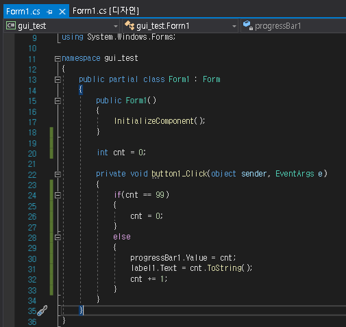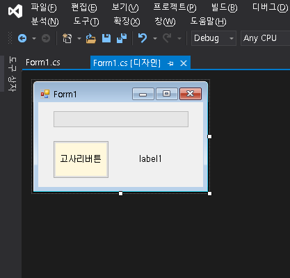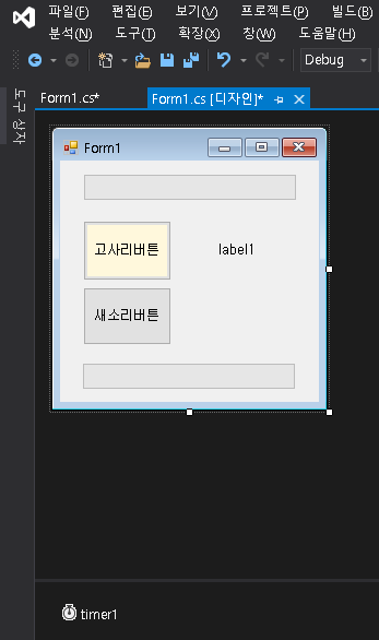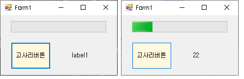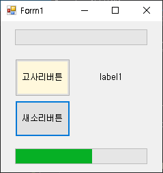 네 버튼 1개, label 1개, progressbar 1개 이렇게 끌어다 놓았습니다. (버튼 색이나 이런건 신경 안쓰셔도 됩니다.)