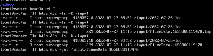 Hadoop cluster에서 hdfs 명령어로 input폴더를 확인해보니