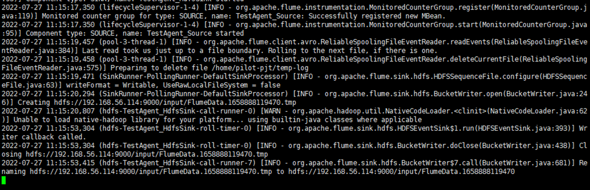 어느정도 글자가 막 올라가다가 멈추면 flume이 실행 된 것입니다.