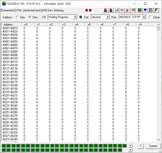 그럼 coil만 쓰고, 읽는게 가능하냐~ 그렇지 않습니다. Simulator 설정을 4번으로 옮겨 Holding Register도 쓰고 읽어보겠습니다.