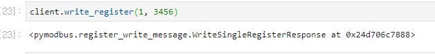 쓰는 것 역시 간단합니다. 아래 코드는 1번째 Holding Register주소에 3456이라는 값을 쓰라는 의미입니다.