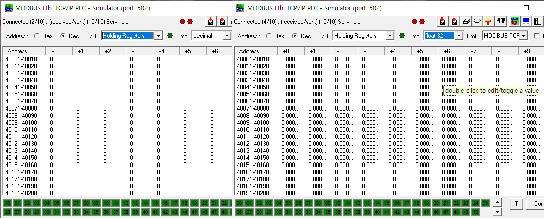 Holding Register는 자료형에 따라 보이는 모습이 다릅니다.