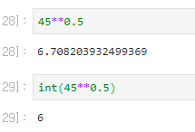 아 근데 왜 1을 더하냐구요? int(num**0.5)의 값 결과 가 '버림'처리가 되기 때문입니다.