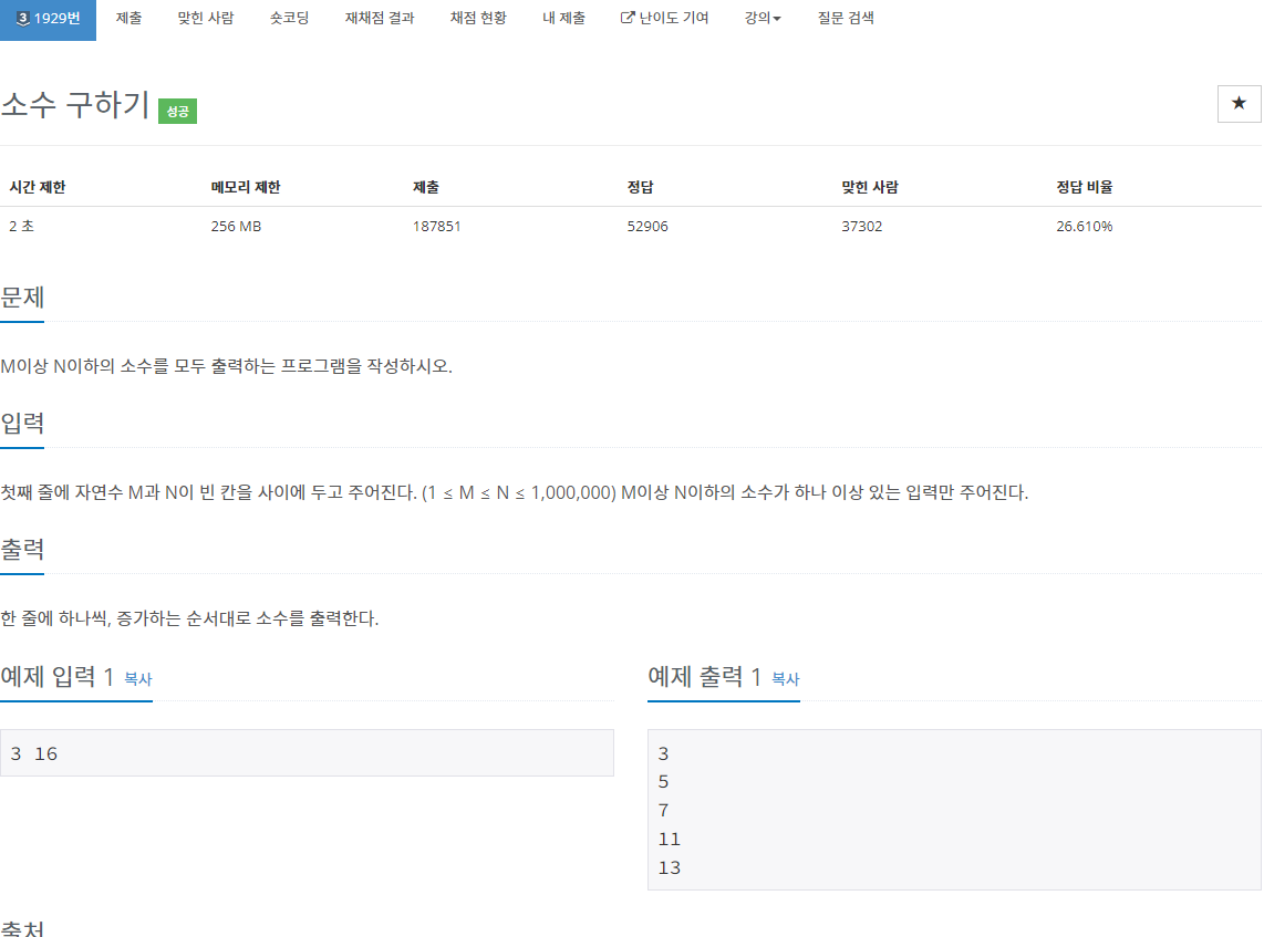 대표적인 문제로는 아래 문제가 있습니다. 대놓고 소수 구하기 라고 하죠 .