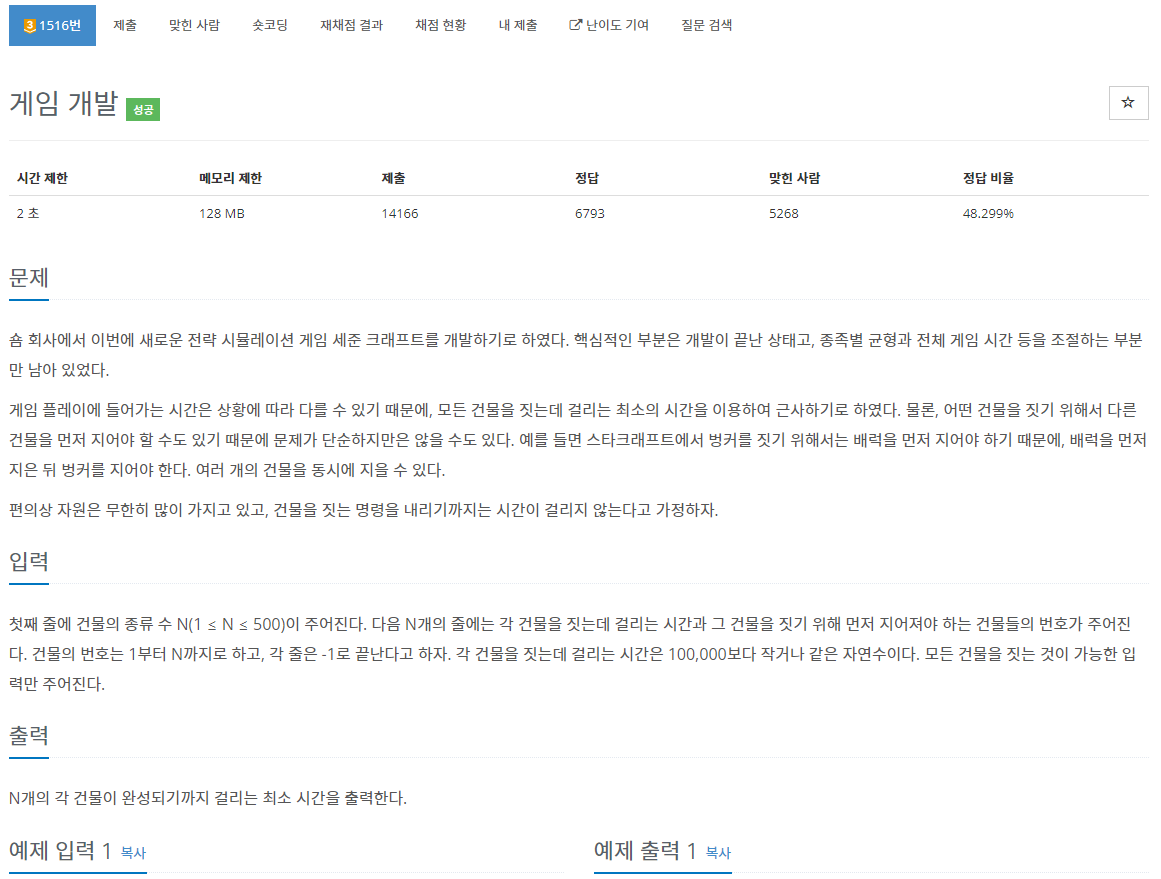1516번: 게임 개발