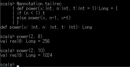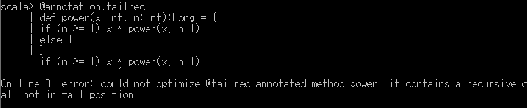 앞서 사용한 power 함수에 @annotation.tailrec을 달았는데... 뭔가 이상하죠?