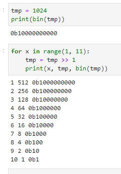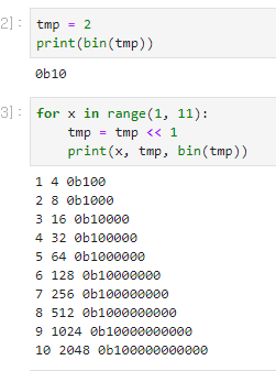 처음 값이 2인데, 1비트 왼쪽으로 옮기면 4가 되고, 한 번 더 옮기면 8이 되죠. 따라서 <<를 쓰면 각 값이 *2만큼 증가하는 것을 볼 수 있습니다.
