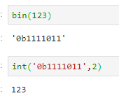 123이라는 입력 변수를 bin으로 확인하면 2진수 숫자가 나옵니다. 해당 자료형은 '문자열'입니다.