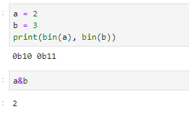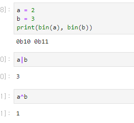 위 코드에서 첫 번째는 둘 다 1인데, 두 번째는 다르므로 0 즉 2진수로 10값은 10진수로 2입니다.