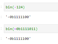 123의 2진수 값에 1을 하나 더해준 후에 맨 앞에 -부호가 붙은 꼴입니다.