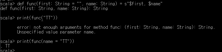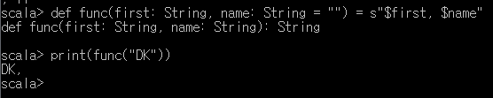 파이썬은 함수 전달인자를 넣을 때 default 값을 설정할 수 있었는데 스칼라도 가능할까요? 가능합니다.