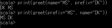 스칼라는 매개변수를 순서와 관계없이 지정할 수 있습니다.