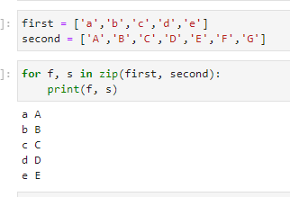 문제는, 두 이터레이터의 길이가 다를 경우인데, 다르면 짧은 것에 맞춰진다.