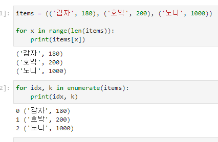 range를 이용해서 index로 접근하는 것 보다, enumerate를 통해 index가 별개로 확인될 수 있는 것이 더 낫다.