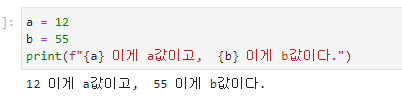 위 코딩방식대로 쓰는 것이 f-문자열 표현방식이다.