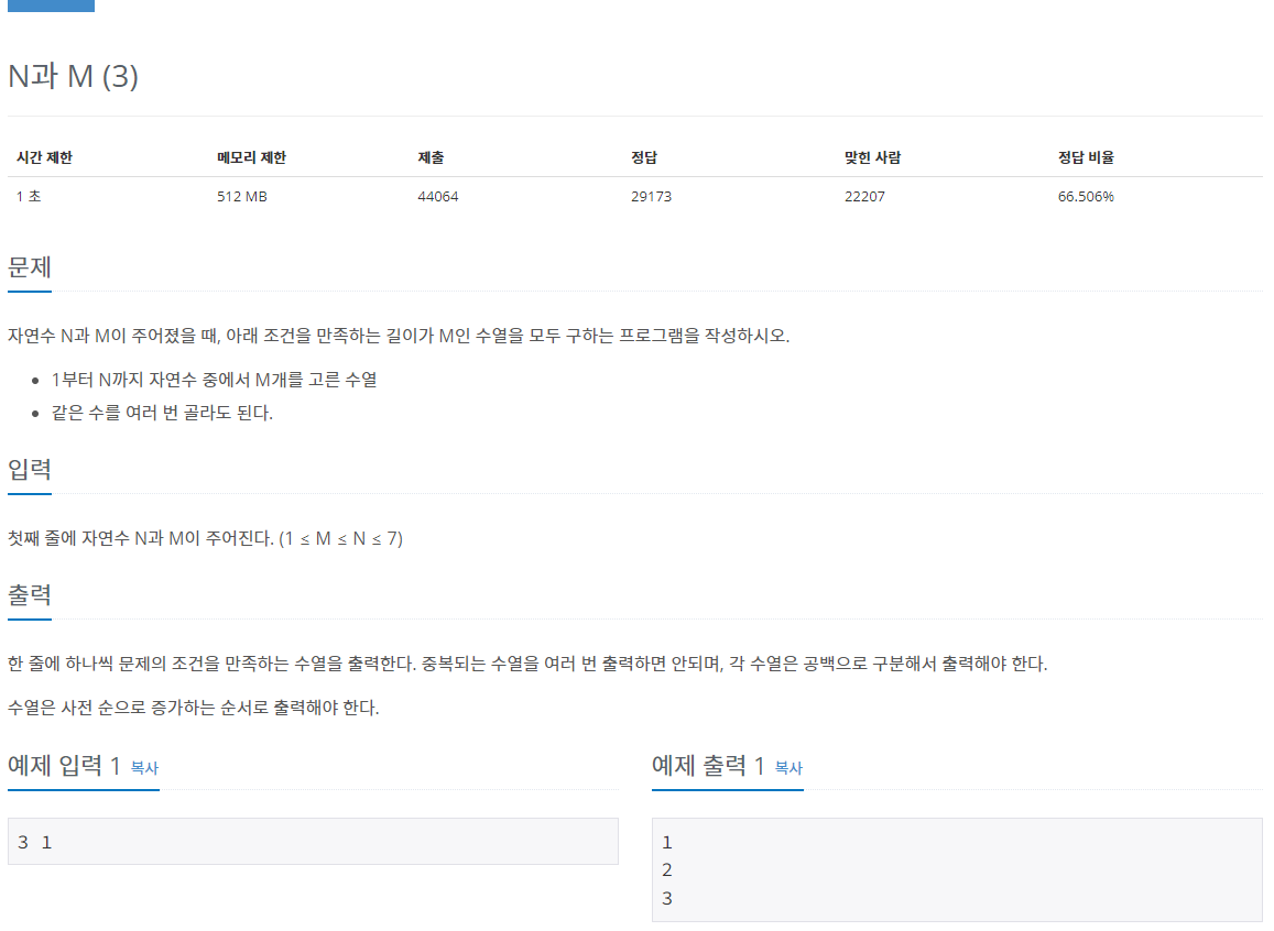 15651번: N과 M (3)