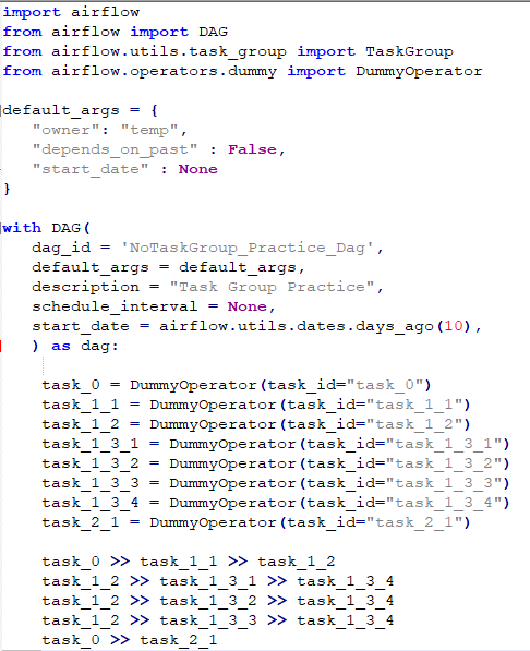Airflow 책을 보면서 Task를 구성하고 연결하는 것 까지는 해보았는데, 갯수가 많은 경우는 보기가 복잡할 수 있겠다~ 싶은 점이 있었습니다.