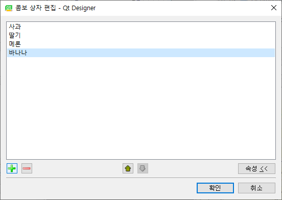 Qt Designer에서 comboBox를 더블클릭하면 아래와 같은 화면이 나옵니다.