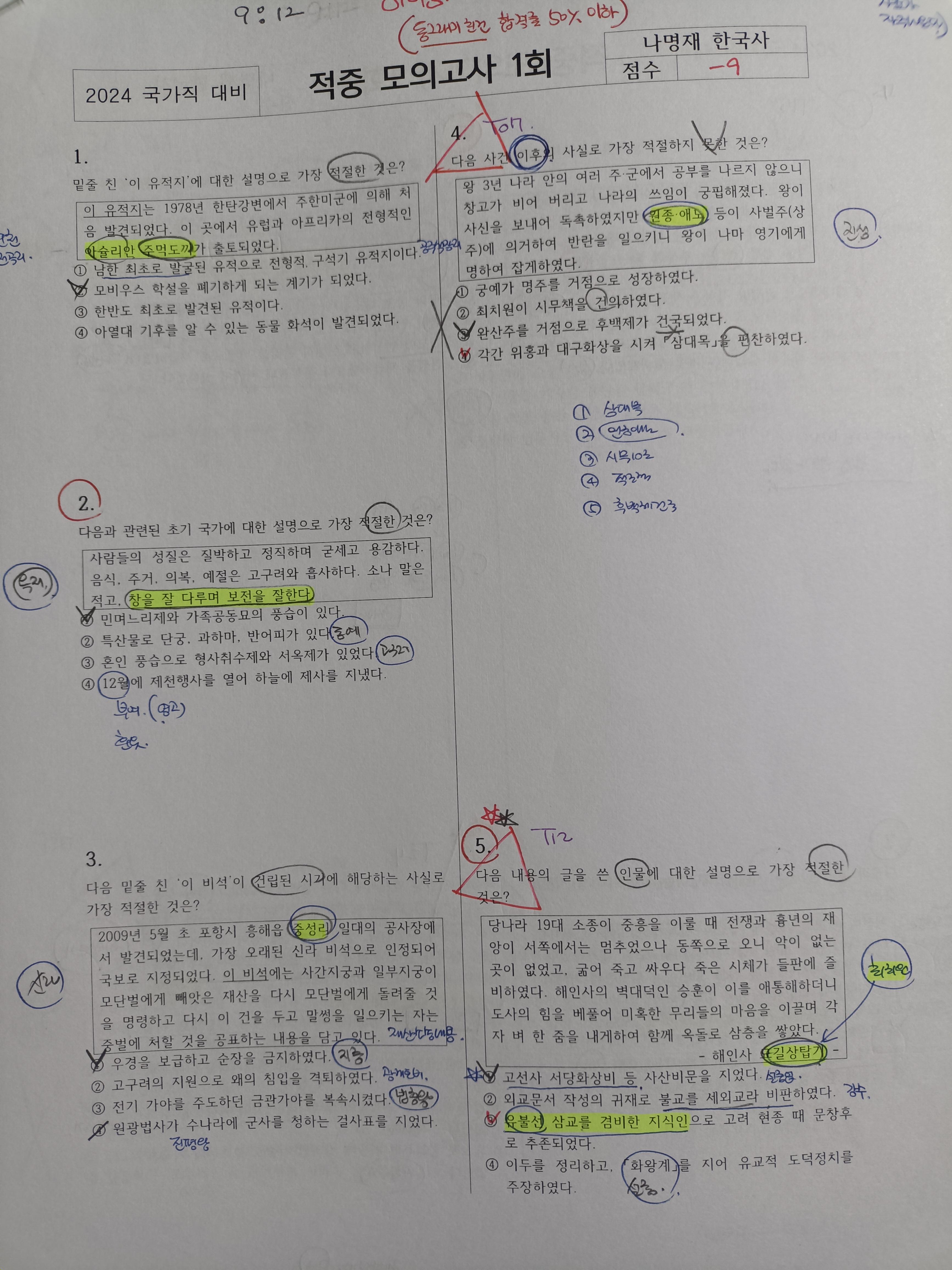 안그래도 시험 볼 때 한국사를 다 푸는데 5분가량 걸렸습니다.