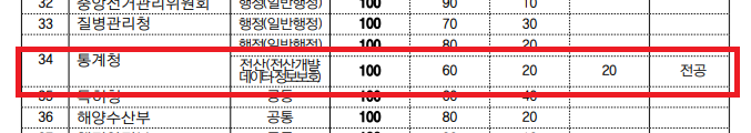 즉, 내 등록번호가 굉장히 상위권이고, 하위권 즉 합격선 부근의 점수와 차이가 17점 이상이 나는 경우가 아니라면 비전공자가 통계청을 가기란 쉽지 않을 겁니다.