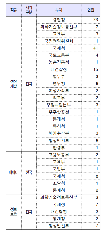 네 이렇게 부처별 TO가 나와있습니다. 생각보다 부처가 굉장히 다양하죠?