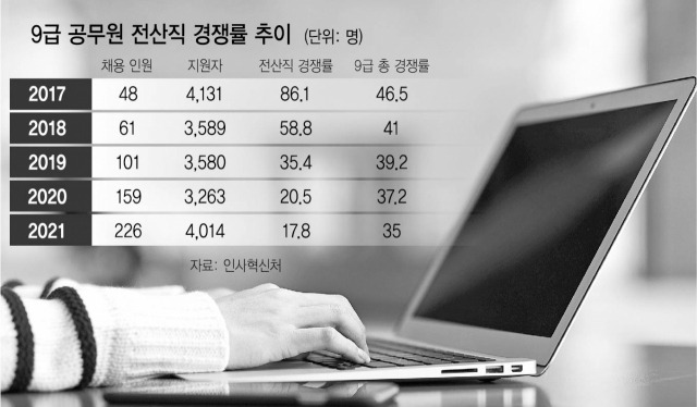 지금은 전산직 뿐 아니라 공무원 전체의 경쟁률이 낮아지고 있는 편 입니다.