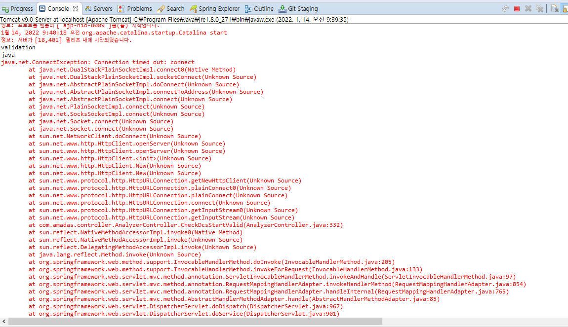 지금 이 코드에러의 핵심은 맨 윗줄 입니다. Connection timed out: connect
