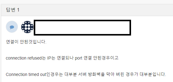 (실행하지 않았다는 것은 곧 방화벽을 막아놓은 것과 같이 서버가 접속이 불가능하기 때문에 timed out이 나옵니다.)
