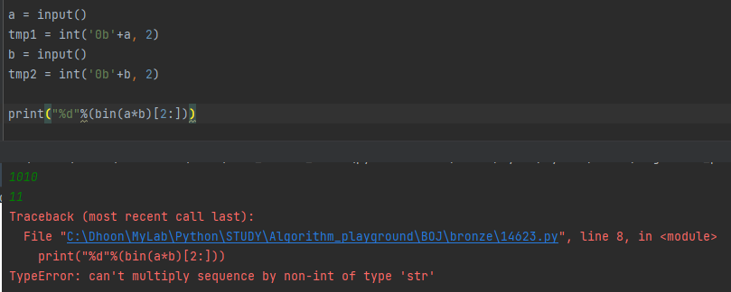 더 자세한 설명은 옆에 나와있습니다. can't multiply sequence by non-int of type 'str'