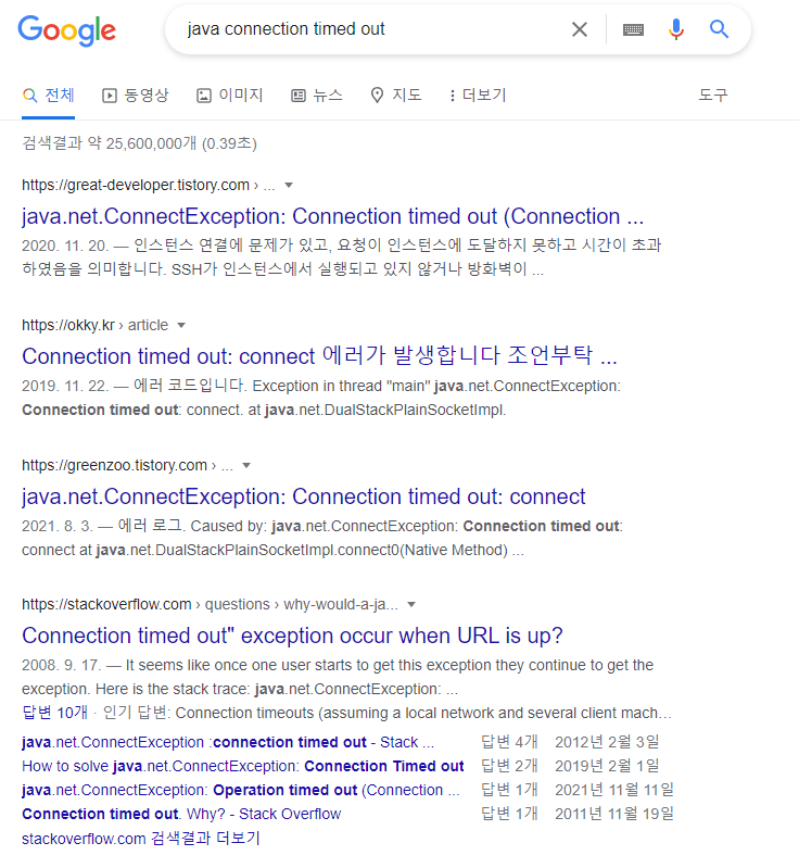 와우 검색 결과가 2천만개나 있다네요? 뭐 아무튼 그 중에 한글로 된 것이든, 아래 보시면 URL이 https://stackoverflow.com으로 로 된 것이든 원하는 것을 확인해보세요.
