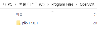 그런 뒤에 C드라이브의 Program Files로 가셔서 'OpenJDK'라는 이름의 폴더를 하나 생성해 주세요
