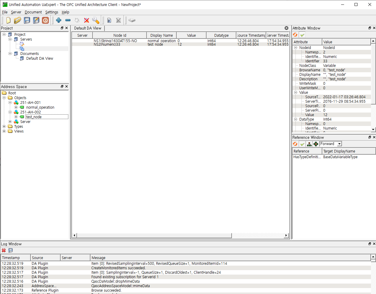 과연 파이썬으로 만든 서버가 정상적으로 생성되었는지 확인해보겠습니다. UaExpert로 접속해보면 알 수 있죠.