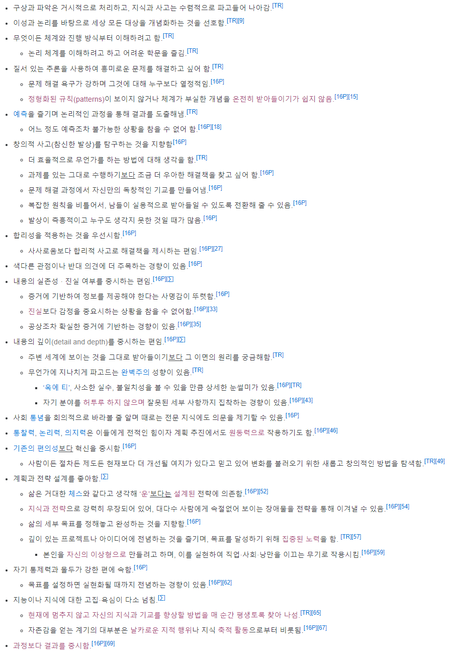그래서 INTJ는 어떤 성격이라고 설명하는지에 대해 궁금해서 나무위키를 검색해 보았습니다.