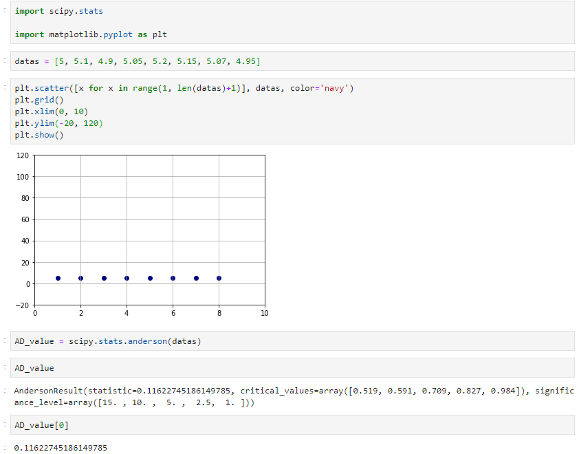 이번 시간에는 파이썬으로 Anderson-Darling 통계량을 확인해 보는 방법을 소개하겠습니다.