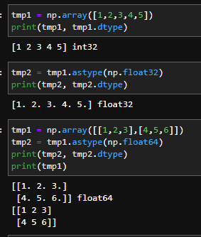 자료형은 Numpy 자료형을 써야 하지만, 그냥 파이썬 자료형을 써도 자동으로 변경 됩니다.