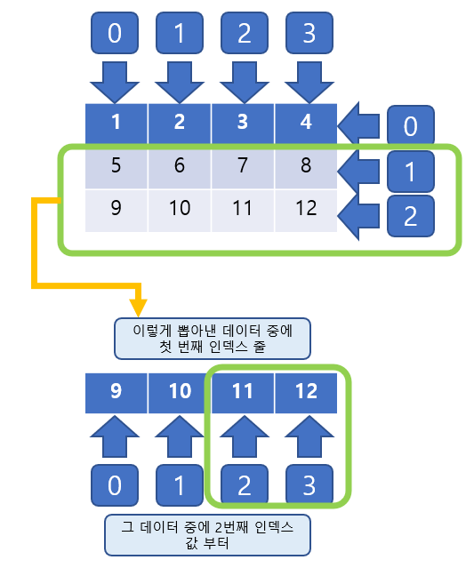 중요한 점은 뽑아낸 데이터에서도 인덱스는 반드시 0부터 시작하는 것임을 까먹으시면 안 됩니다.