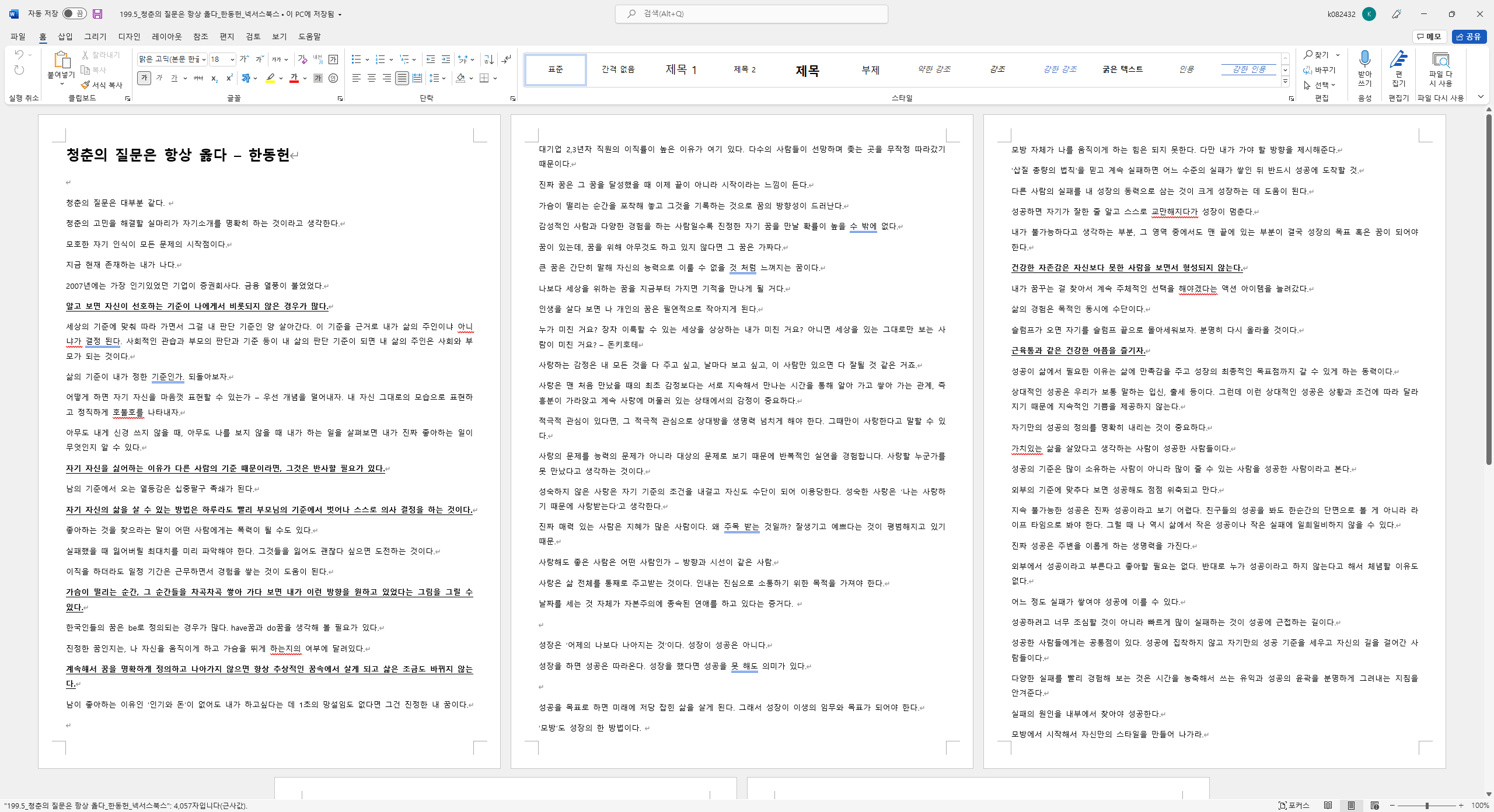 만일 해당 책이 제 책이라면 단순히 밑줄만을 치겠지만, 도서관에서 빌린 책이라면 워드로 따로 정리 해 둡니다.