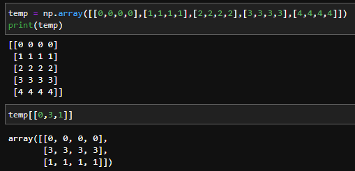 temp라는 임의 배열을 만들고, 0, 3, 1인덱스 위치의 값을 가져온 것입니다.