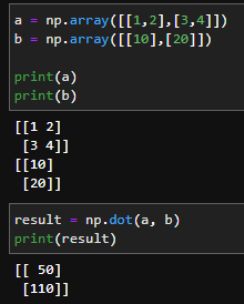 내적은 반드시 앞 배열의 '열' 갯수와 뒷 배열의 '행' 갯수가 같아야 합니다. (이는 수학에서도 똑같죠)
