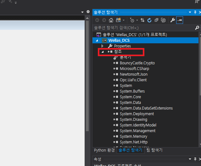 오른쪽에 솔루션탐색기를 보시면 프로젝트에 참조가 있을 겁니다.